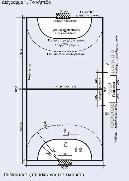1:1 Το γήπεδο (διάγραμμα 1) έχει σχήμα ορθογωνίου παραλληλογράμμου, διαστάσεων 20x40 μέτρα, αποτελούμενο