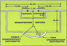 άκρο του αγωνιστικού χώρου, χαράσσεται μια επανορθωτική περιοχή (πέναλτι), ως