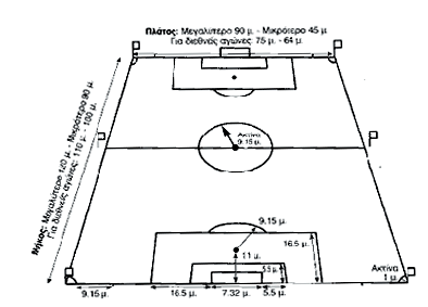μικρότερο 90 μ. (100 γυαρδών) Το μεγαλύτερο 120 μ. (130 γυαρδών).